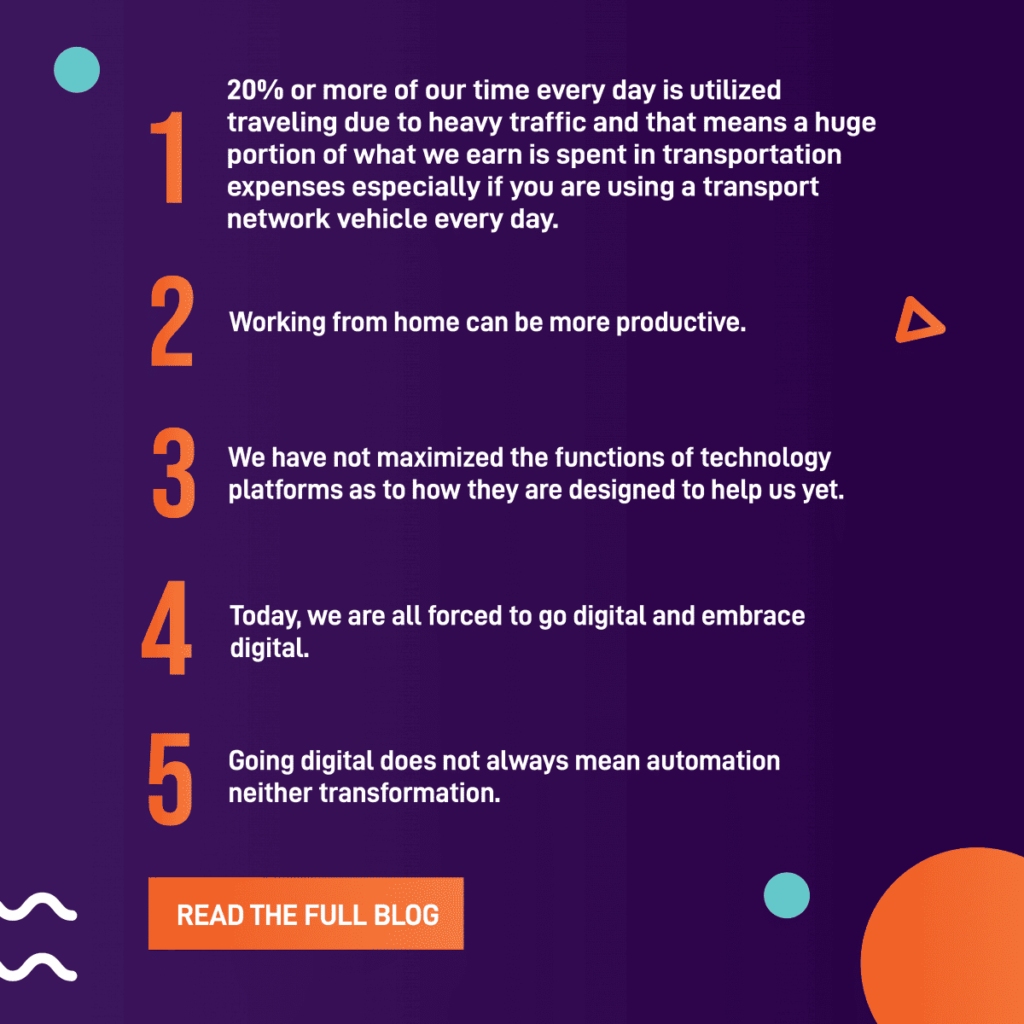 - Going digital does not always mean automation neither transformation. Yes, I have a digital store but all the order process remains “manual” . It just happened that it’s done via a digital platform. Buyer see the page or marketplace post, inquire about the price, ask 1,2,3 up to n questions, and go back after some time (an hour, a day or two) transfer money in the bank or GCash or request a COD. Same process goes with my supplier and I maintain a spreadsheet of every product, transaction, and so on that, if I miss updating, all the data needs to be retrieved in my Facebook messenger. Which means no reconciliation process is done yet. I call this “manually digital”. So ironic, but I think this is true to many businesses – both SMEs and large corporations. Going digital did not automate the process and did not drive business transformation. It only transferred a physical and manual process to another platform and in MULA’s case it’s Facebook. While we all rush to go digital to survive and ensure our cash flow, it’s important to consider our in our going digital action plans if it will truly transform how we operate and thrive rather than merely survive.