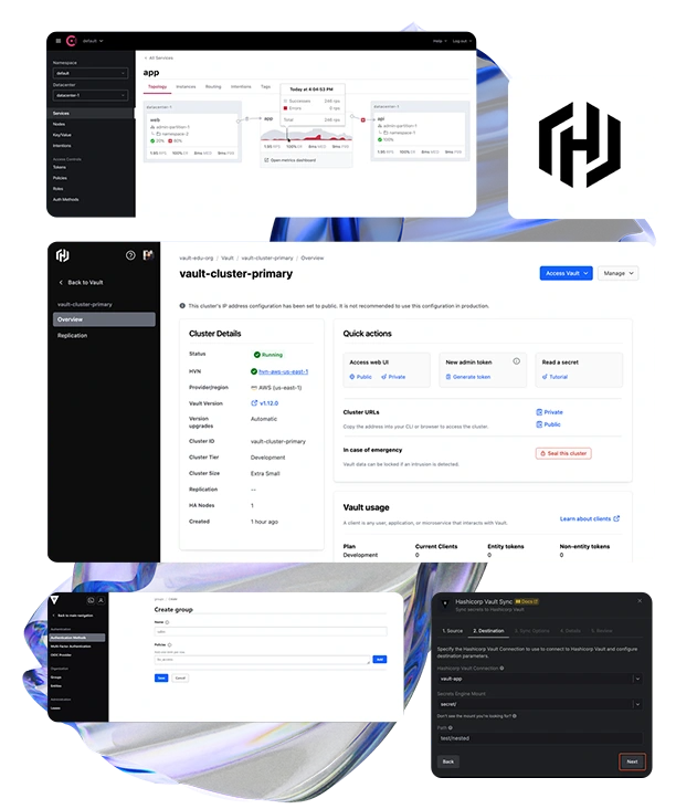 HashiCorp Vault menyimpan dan mengelola data sensitif seperti API keys dan kata sandi secara aman. Layanan ini menawarkan penyimpanan terenkripsi, pengadaan dynamic secrets, dan identity-based access controls, memastikan data sensitif Anda aman dan hanya dapat diakses oleh pengguna yang memiliki otoritas.
