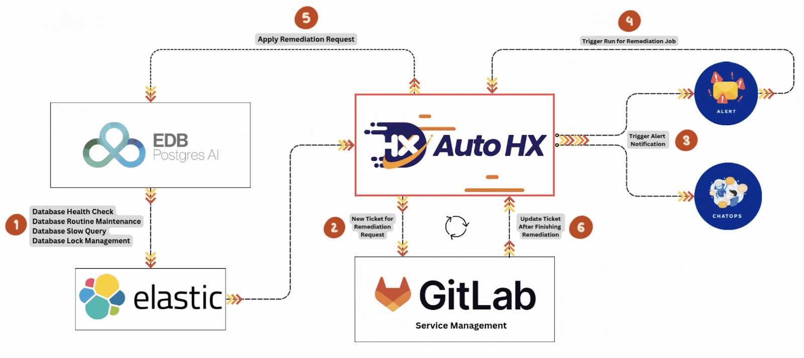 AutoHX mengadopsi mekanisme event-driven yang memastikan kesehatan database terjaga secara konsisten melalui pemeriksaan rutin dan respon otomatis. Seluruh siklus penanganan insiden bertransformasi menjadi alur kerja yang ramping dan tanpa hambatan: