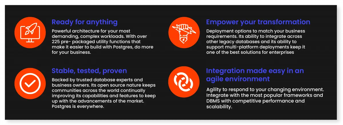 As the world constantly innovates and scales, EDB offers an integrated portfolio of databases and tools that extend PostgreSQL for enterprise workloads, featuring world-class support.